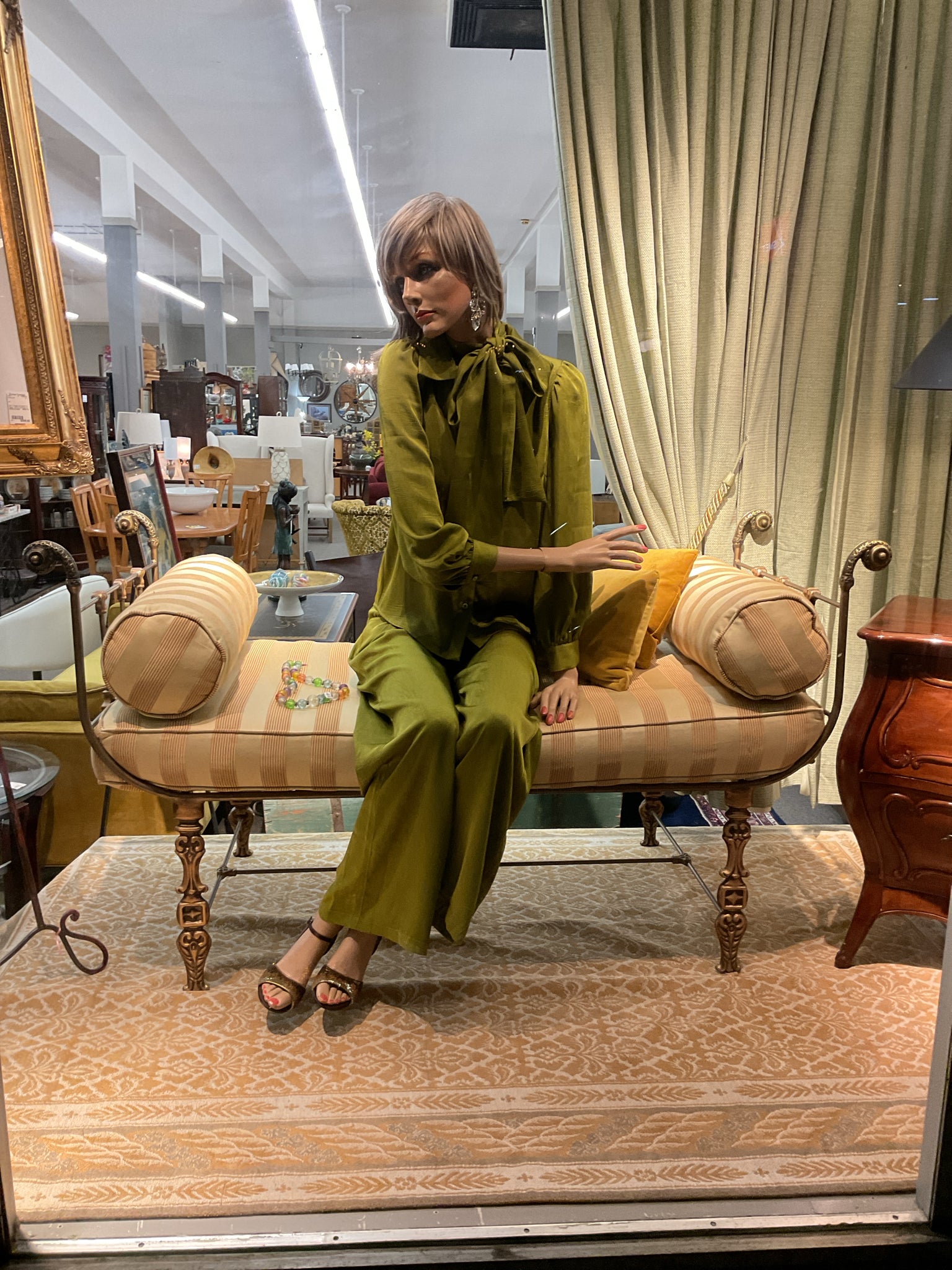 French Metal Daybed w/Damask Cushioning